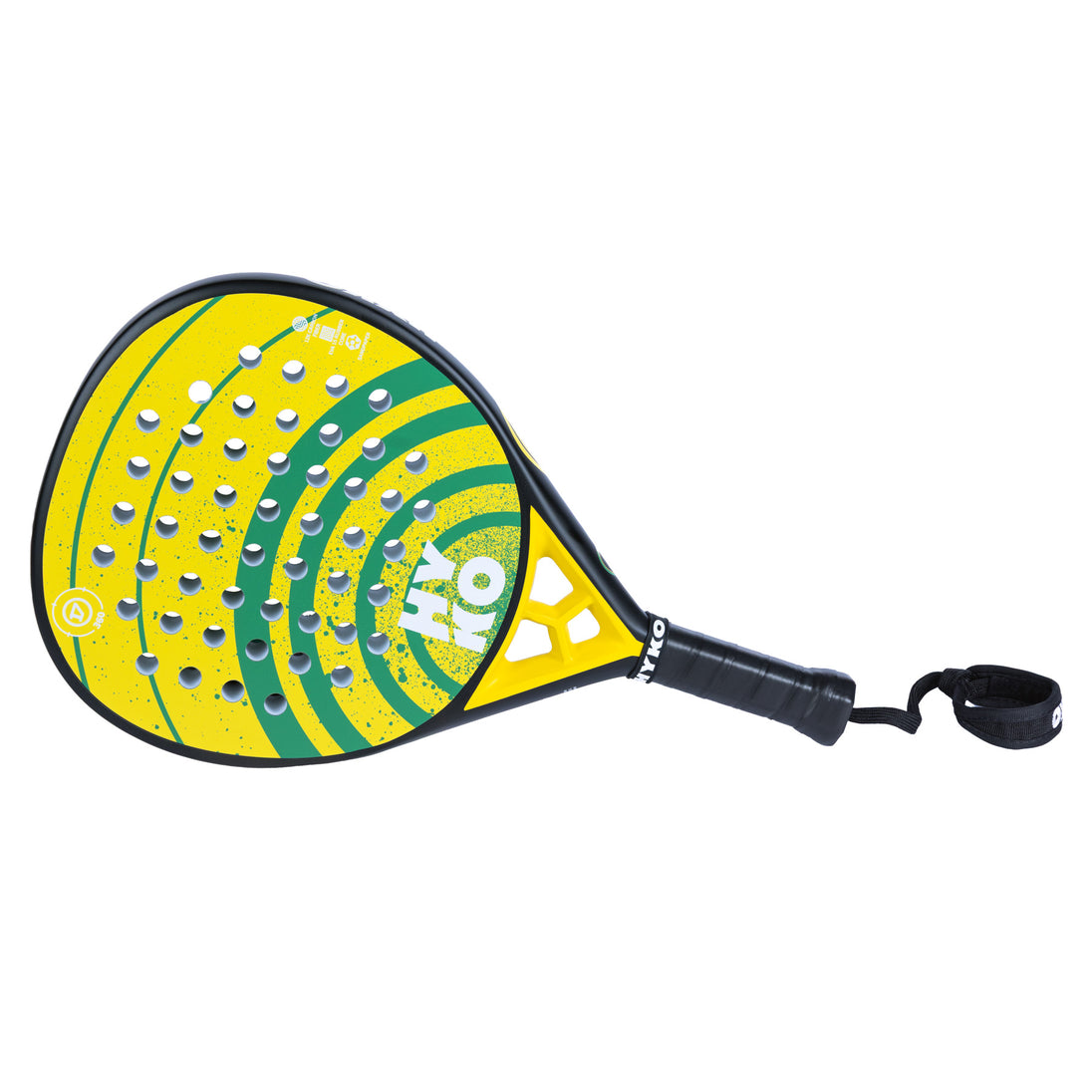 The HYKO 360 Gold padel racket, part of the exclusive AB de Villiers collection, features a diamond shape, soft EVA 13 core, 12K carbon face, and sandpaper-textured surface. Built for explosive power, high spin potential, and confident shot-making from every angle.